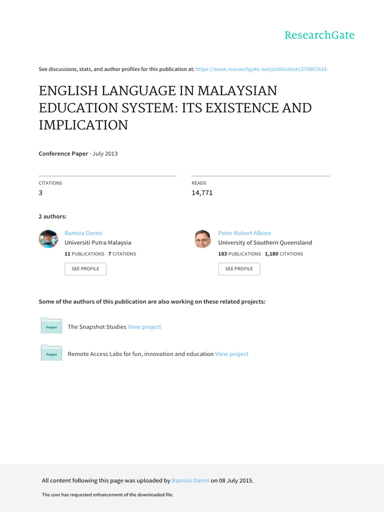 English Language In Malaysian Education System / Being truly fluent in english opens to deeper understanding of research from other countries.