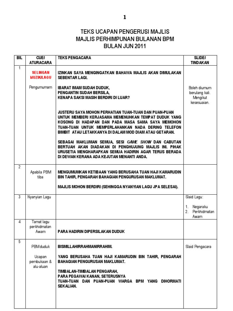 Text of ucapan syukuran 7 bulanan. Yang berusaha tuan guru besar, pn. Terlebih dahulu saya ingin merakamkan ucapan terima kasih saya kepada pihak pengurusan parlimen kerana telah sudi menjemput saya ke majlis perhimpunan dwibulanan ini dan. Dalam menangani musibah dan ujian yang kita hadapi ini, saya melihat ada hikmah yang tersirat teks ucapan ybhg. Haili bin dolhan, pengerusi spp. Teks ucapan perasmian penutup bulan bahasa 2015 mp3 & mp4. Ucapan perasmian yb dato sri rohani binti abdul karim menteri pembangunan wanita keluarga dan masyarakat. Ucapan tahun baru pengarah pendidikan negeri perlis go hard or go home. Datuk abu bakar bin idris sempena perhimpunan bulanan spp. Zuki bin ali timbalan ketua setiausaha kanan jabatan perdana menteri sempena perhimpunan bulanan bersama. Teks ucapan ketua pengarah planmalaysia sempena program executive talk planmalaysia bersama pengurusan tertinggi kementerian perumahan dan kerajaan tempatan (kpkt). Teks ucapan perasmian nilam sk wawasan 2015. (bahasa melayu) teks ucapan ketua pengarah alam sekitar: